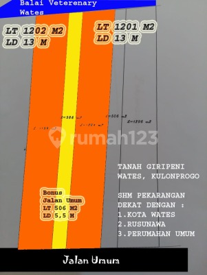 Tanah di Wates, Kulon Progo. For sale di wilayah yang tenang. Dengan rinciannya adalah sebagai berikut: - Sertifikat: SHM - Sertifikat Hak Milik Dan properti ini juga pilihan tepat karena: - Dekat Akses Bandara. - Dekat Sekolah Internasional. - Dekat Sekolah Negeri. - Dekat Tempat Ibadah. - Dekat Taman Kota. - Dekat Fasilitas Kesehatan. - Dekat Pusat Perbelanjaan. - Bebas Banjir. - Dipinggiran kota. - Sejuk. - Cocok Untuk Investasi. Keberadaan tanah ini dekat fasilitas umum, hanya selangkah menuju berbagai fasilitas utama dan menarik. Dengan Rp. 1.500.000, anda dapat langsung dapatkan tanah terbaik di daerah Wates ini.