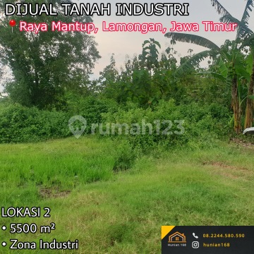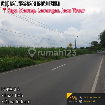 Tanah / Kavling Industri Raya Mantup Lamongan Dijual / Disewakan UMR ikut Lamongan Ada beberapa lokasi : LOKASI 1 - Luas 3600 m² - Zona Industri - Harga 600 rb / m² LOKASI 2 - Luas 5500 m² - Zona Industri - Harga 600 rb / m² LOKASI 3 - Luas 1 Ha - Zona Industri - Harga 600 rb / m² LOKASI 4 - Luas 2 Ha - 10 Ha - Zona Industri - Harga WA / Call