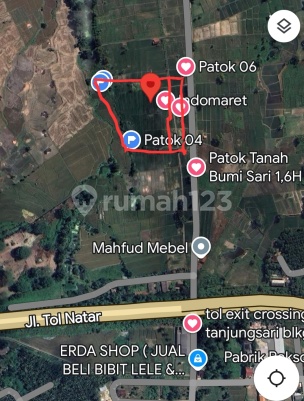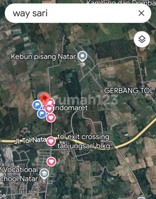 Tanah Datar Area Natar Berkembang pesat, pinggir Jl. Swadipa. dekat Pintu TOL Natar. Lokasi Sekitar Kawasan Pendidikan dan Perumahan. Sawah produktif, irigasi. Sangat strategis, cocok untuk investasi.