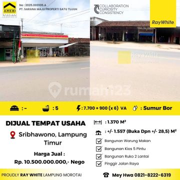 Dijual Tempat Usaha terdiri dari 2 Ruko plong 2 Lantai,5 pintu kios .Berlokasi di Jl.Ir.Sutami,Bandar Sribhawono,Lampung Timur. Info Hub: 08218222xxxx Meyhwa