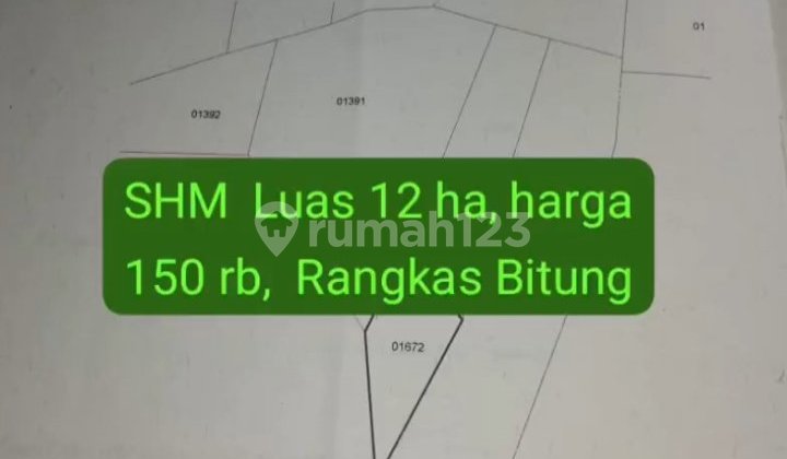 Dijual tanah rangkas bitung Tangerang, banten Lt 12ha Shm Harga 150rb/m² A056