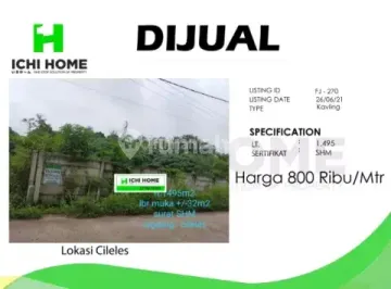 - LT 1495 m2 - Lebar Muka +/- 32 m - Sertifikat SHM Harga 800 Ribu/m2 Info lebih lanjut hubungi : Pujiani