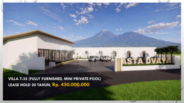VILLA VIEW GUNUNG MERAPI DAN MERBABU DEKAT AMANJIWO BOROBUDUR Lokasi : Borobudur Villa cantik dengan private pool lgsg view gunung Merapi dan Merbabu di Borobudur. Lokasi strategis dengan view terbaik. Booking unit anda sekarang juga hanya ada 8 unit sangat terbatas. SPESIFIKASI : - Luas Bangunan 35m² - Luas Tanah 35m² - 1 Kamar Tidur - 1 Kamar Mandi - Private Pool - Listrik 2200watt - Fully Furnished - SHM - Hadap Barat ( view gunung Merapi dan gunung Merbabu ) SELLING POINT : - View Gunung Merbabu dan Gunung Merapi - 9 menit ( 3,3km ) dari Candi Borobudur - 7 menit ( 3,2km ) dari Amanjiwo - 7 menit ( 2,8km ) dari Plataran Borobudur - 6 menit ( 2,1km ) dari Hotel La Temple Borobudur - 34 menit ( 17km ) dari SMA Taruna Nusantara - 36 menit ( 20km ) dari AKMIL MAGELANG - 28 menit ( 16km ) dari Artos Mall VILLA VIEW GUNUNG MERAPI DAN MERBABU DEKAT AMANJIWO BOROBUDUR