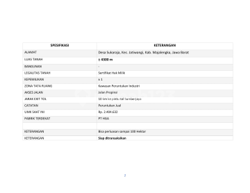 Dijual Tanah Lahan Peruntukan Industri Sukaraja, Jatiwangi, Kab.Majalengka Akses Jalan Propinsi 10 KM ke pintu tol LT : +-4300 m2 LM : 30 m2 SHM Harga : 1,65 JT /m2 Nego Johan FLOWY (rwc)