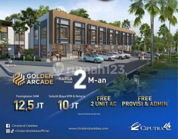 Bismillah Ruko Modern Golden Arcade Citraland Celebes Dapatkan ruko strategis dengan return investasi tinggi di Hertasning, Makassar. Citraland Celebes, Hertasning Menghadirkan Ruko Baru dengan konsep modern tropis dengan area lebih privacy dan sistem second road Ruko golden arcade Terdiri dari 3 tipe : 1. Ukuran 5x12 2. Ukuran 5x15 3. Ukuran 5x18 Harga mulai 2,2 Man Promo: * Free biaya peningkatan SHM * Free AC 2 unit * Subsidi biaya akad Ruko ini menawarkan kelengkapan fasilitas serta memiliki nilai tepat yang siap untuk segera Anda miliki, utamanya bagi Anda yang mencari hunian di lokasi yang terjangkau. Kondisi properti ini bagus dengan detail properti sebagai berikut: - Kamar Mandi: 2 - Sertifikat: SHM - Sertifikat Hak Milik - Kondisi Perabotan: Unfurnished Tidak hanya itu, namun properti ini juga memiliki keunggulan sebagai berikut: - Bisa KPR. - Bebas Banjir. - Cicilan Bertahap. - Free Biaya Notaris. - Free Biaya KPR. - Dekat Akses Bus Kota. - Dekat Pusat Perbelanjaan. - Dekat Sekolah Internasional. - Dekat Sekolah Negeri. - Dekat Universitas. - Dekat Fasilitas Kesehatan. - Dekat Tempat Wisata. - Dekat Tempat Ibadah. - Dekat Taman Kota. - Dekat Landmark. - Dekat Akses Tol. - Lokasi di Pusat Kota. - Dekat Kawasan Bisnis & Industri. - Adem & Sejuk. - Lingkungan Tenang dan Damai. - Pemandangan City View. - Cocok Untuk Investasi. - Akses Jalan Muat 2 Mobil. - Properti Mewah. - Properti Eksklusif. - Bisa KPR. - One Gate System. - Lokasi Bebas Banjir. - Lokasi Strategis. Lokasi Strategis terletak di Hertasning, properti ini memudahkan akses Anda ke fasilitas-fasilitas utama dan unggulan Harga yang sangat kompetitif yaitu, Rp. 2.200.000.xxx, ruko ini siap menjadi milik Anda! Nikmati segala kemudahan dan berbagai keunggulan menarik saat properti berkualitas ini milik Anda. Hubungi segera dan dapatkan informasinya ataupun cek unit!
