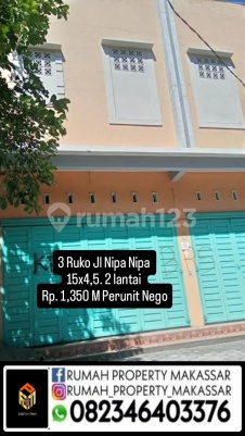 3 Ruko Jl Nipa Nipa 15x4,5. 2 lantai Samping kompleks Baruga Sebelum kampus UVRI Rp. 1,350 M Perunit Nego