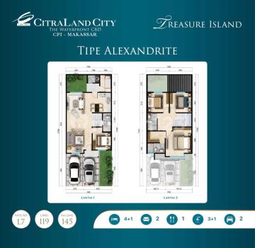 Dijual cepat rumah mewah di citraland city losari makassar CPI luas tanah : 119 m2 lua bangunan : 145 m2 kamar tidur 4 + 1 kamar mandi : 3 + 1 carport 2 dimensi 7x17 semi furnish