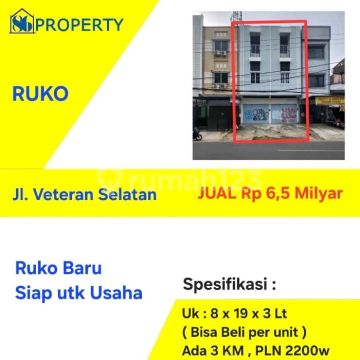 Kesempatan terbatas buat Anda dapatkan ruko nyaman dengan return investasi tinggi di jl.veteran selatan, Makassar. Ruko ini menawarkan kelengkapan fasilitas serta memiliki nilai tepat yang siap untuk segera Anda miliki, utamanya bagi Anda yang mencari tempat usaha di lokasi yang sangat strategis. Kondisi properti ini bagus dengan detail properti sebagai berikut: - uk 8 x 19 x 3 lantai - Sertifikat Hak Milik - Daya Listrik: 4.400 watt - parkiran luas Tidak hanya itu, namun properti ini juga memiliki keunggulan sebagai berikut: - Lokasi dipusat kota. - Cocok Untuk Investasi. - Cocok Untuk Dijual Kembali. - Properti Eksklusif. - Properti Bisa Nego. Lokasi Strategis terletak di jl.veteran selatan, properti ini memudahkan akses Anda ke fasilitas-fasilitas utama dan unggulan Harga yang sangat kompetitif yaitu, Rp 6.500.000.xxx, ruko ini siap menjadi milik Anda! Nikmati segala kemudahan dan berbagai keunggulan menarik saat properti premium ini milik Anda. Hubungi segera dan dapatkan informasinya ataupun cek unit! sahar : 081141xxxx Agen 86 Property