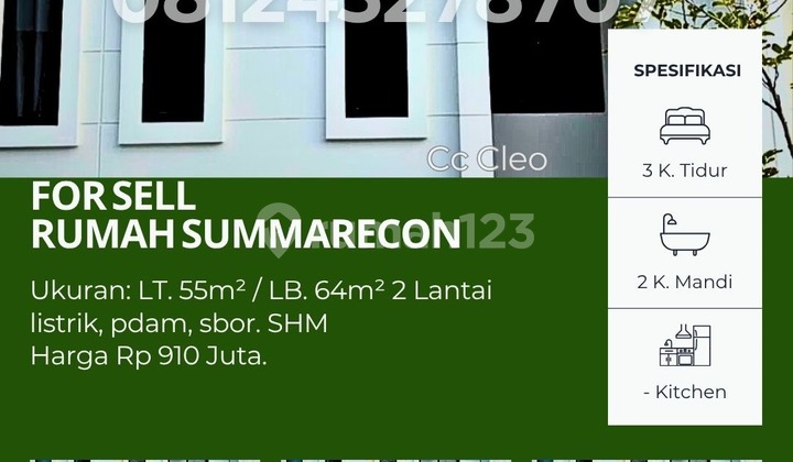 Dijual rumah modern di Summarecon Mutiara Makassar, Cluster Topaz Residence. Hunian nyaman, lokasi strategis, cocok untuk keluarga dan investasi. Luas tanah: 55m² | Bangunan: 64m² (2 lantai) 3 Kamar Tidur | 2 Kamar Mandi Fasilitas: Listrik, PDAM, sumur bor Sertifikat Hak Milik (SHM) Harga Rp 910 Juta (nego) Segera miliki rumah di Summarecon Mutiara Makassar. Hubungi sekarang untuk jadwal survei dan penawaran harga terbaik! Rumah dijual Summarecon Mutiara Makassar, Cluster Topaz Residence, rumah 2 lantai Makassar, rumah keluarga modern Makassar, investasi properti Summarecon.