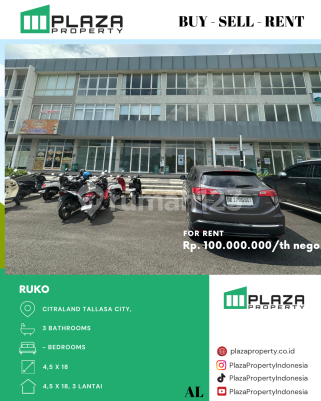 Ruko di Citraland Tallasa City, Tamalanrea. Temukan ruko yang modern ini, disewakan menghadirkan lingkungan fasilitas yang lengkap, cocok untuk Anda yang menginginkan hunian strategis. Spesifikasi Utama Properti: - Kamar Mandi: 3 - Sertifikat: SHM - Sertifikat Hak Milik - Kondisi Perabotan: Unfurnished Fitur unggulan: - Dekat Kawasan Bisnis & Industri. - Lingkungan Tenang dan Damai. - Properti Bisa Nego. - Akses Jalan Muat 2 Mobil. - Lokasi Strategis. Berlokasi di Tamalanrea, ruko ini memberikan kemudahan akses ke berbagai fasilitas menarik. Dengan harga Rp. 100juta/tahun , anda bisa memiliki hunian eksklusif yang sudah siap huni dan bersertifikat SHM - Sertifikat Hak Milik. Segera ambil kesempatan untuk menikmati pengalaman berusaha di kawasan Tamalanrea yang nyaman ini! Kontak segera untuk informasi lebih lanjut!