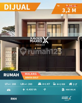 Spesifikasi: Luas tanah 188 m² (7,5x25) Luas bangunan ±260 m² Bangunan 2 lantai Carport 2 mobil Kamar tidur 4+1 Kamar mandi 4+1 Dapur basah & pantry Ruang kerja Ruang laundry Listrik 4400 VA Air artesis SHM Selling Point: Kualitas bangunan premium Row jalan kembar utama cluster Lingkungan aman & nyaman Tata ruang luas & efisien Area service terpisah BONUS Taman & Kanopi Premium Harga Hanya 3,2 M Nego Dekat Rumah Sakit Persada Dekat Plaza Araya Dekat Universitas Bina Nusantara (Binus) Dekat terminal Arjosari Dekat Exit Tol Singosari Dekat Tol Karanglo Dekat stasiun Dekat Pasar Blimbing Dekat Ombe Kofie Dekat Hawai Waterpark Dekat Araya Arcade Garden by Rustic Market Dekat Area Golf Terbesar Dekat Kampung Warna Warni (Jodipan) Dekat Gudang Oleh Oleh Terbesar di Malang Dekat Lancar Jaya More Info: RAHMA 0811377xxxx XAVIER MARKS PREMIER