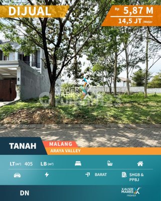 Dijual Tanah Kavling di Jalan Utama Araya Valley, The Araya Malang - hanya jarak 600 meter ke kampus Binus - ?selangkah ke 1/15 coffee dan ombe kofie - ?cocok untuk dibangun rumah tinggal / rumah kost / guest house / cafe dll - ?berada di mainroad dengan ROW 24 meter Luas Tanah 405m2 Dimensi 15m x 27m Hadap Barat Legalitas SHGB / PPJB ke-1 (bisa ditingkatkan ke SHM setelah dibangun rumah) Harga Jual Rp 5,87M (Rp 14,5juta per m2) nego 082025