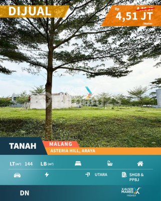 Dijual Tanah Kavling Termurah di Cluster Asteria Hill, The Araya Malang - dimensi kavling cukup langka - bukan posisi tusuk sate Luas Tanah 144m2 Dimensi 8m x 18m Hadap Utara Legalitas SHGB / PPJB ke-1 (bisa ditingkatkan ke SHM setelah dibangun rumah) Harga ke Rp 650juta (Rp 4,51juta per m2) 082025