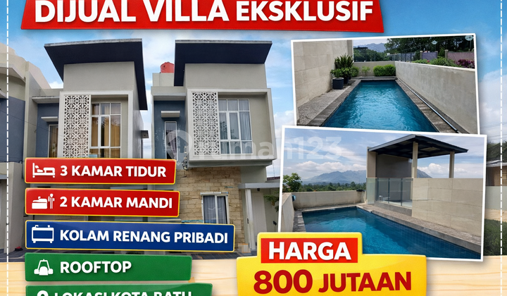 Villa di Batu, Malang. For sale di wilayah yang asri. Dengan kategorinya adalah sebagai berikut: - Kamar Tidur: 3 - Kamar Mandi: 2 - Sertifikat: SHM - Sertifikat Hak Milik Dan properti ini juga terdepan karena: - Bebas Banjir. - Villa Mewah. - Private & tidak terganggu. - Kolam renang pribadi. - Cocok untuk keluarga. - Cocok untuk rombongan. - Desain minimalis. - Lokasi dipusat kota. - Sejuk. - Cocok Untuk Investasi. - Akses Jalan Muat 2 Mobil. - Properti Bisa Nego. Keberadaan villa ini mudah dijangkau, hanya selangkah menuju berbagai fasilitas utama dan menarik. Dengan Rp. 875.000.xxx, anda dapat langsung dapatkan villa premium di daerah Batu ini.