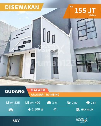 Spesifikasi¹⁰ : Luas tanah 325 Luas bangunan 400 Kamar tidur 2 Kamar mandi 2 Lantai 2 Air sumur / tandon 2200 watt Area parkir Shm Akses truk fuso/ban double Lokasi dekat dengan terminal arjosari Daerah industri Akses mudah Cocok untuk Gudang / Kantor ataupun usaha lainnya Dekat dengan exit tol Harga sewa : 155 jt / thn Minim sewa 2 thn More Info: SARI 0881558xxxx XAVIER MARKS PREMIER