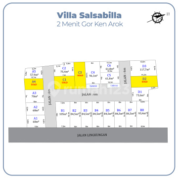 Data Spesifikasi Villa Salsabila Buring : 1. Alamat Properti : Jl.Kalianyar RT:02 RW: 01, Kec.Kedungkandang kel.Wonokoyo , Malang 2. Luas Tanah : 77 m2 3. Luas Bangunan : 40 m2 4. Listrik : 1.300 WATT 5. Air : Pompa Sanyo ( sumur bersih ) dan PDAM 6. Kamar Tidur : 2 7. Kamar Mandi : 1 8. Gudang : 1 9. Ruang Keluarga : 1 10. Ruang Tamu : 1 11. Dapur : 1 12. Ruang Makan : 1 13. Area Cuci Baju & Jemur : 1 14. Carport : 1 Lokasi Strategis : 1. Gor Ken Arok (3 Mnt) 2. Universitas Terbuka Malang (5 Mnt) 3. Dispendukcapil ( 7 Mnt ) 4. RSUD Kota Malang ( 5 Mnt ) 5. PT.Indomarco Prismatama (5 Mnt) Harga 370 JT an Bisa Inhouse 12 Bulan