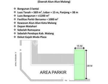 RUKO STRATEGIS DI JALAN MERDEKA Sewa Gedung JL MERDEKA - Malang LT 600 LB 1200 KT 1 KM 1 Dimensi 15 x 38 Listrik 3500 Rp 750.000.xxx SHM Hadap Barat Ruko strategis di Jalan Merdeka, Malang! Hanya 2 menit jalan kaki ke Alun-Alun. LT 600m², bangunan 3 lantai, siap pakai dengan akses mudah dan parkir luas. Sewa Rp 750 juta (nego).