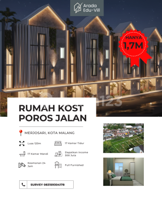 Luas Tanah 72 m² 10 Kamar 10 Kamar Mandi (dalam) Garasi Free design kost Free management kost Free aplikasi khusus management kost Ada garansi passive income 3 Menit Kampus UMM 7 Menit UNISMA 11 Menit UIN Malang 15 Menit Kampus Brawijaya Lingkungan kost mahasiswa Dekat Rumah sakit UMM