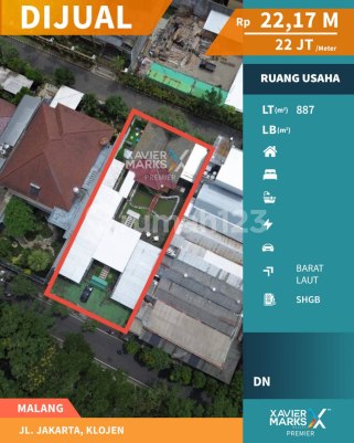 Update Turun Harga [PREMIUM LISTING] - hanya 1 menit ke Ijen Boulevard - berada di jalan kembar dan sebelah kawasan bisnis kuliner Jalan Pahlawan Trip - lahan cocok dijadikan lokasi komersial resto / cafe / convenience store / minimarket modern / klinik / kantor dll - space parkir luas Luas Tanah 887m2 Dimensi 19m x 46,6m Hadap Barat Laut Legalitas SHGB Harga Jual Rp 22,17M (Rp 25juta per m2) Turun Harga ke Rp 19,51M (Rp 22juta per m2) nego serius dipertimbangkan Hubungi AGEN KEZIA LILIANA - XAVIER MARKS PREMIER untuk info dan janji temu. Tekan tombol WA yang ada di halaman ini. (instagram - ********) (RA)