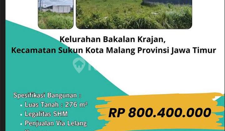 Spesifikasi : Luas Tanah : 276 m2 Kosong Siap Bangun SHM Penjualan Via Lelang Seliing Point : 5 Menit ke Ocean Garden 15 Menit ke SMKN 11 Malang 20 Menit ke SMPN 17 Malang Harga : 800,400,000 Dekat pusat perbelanjaan (MOG, MCP, Cyber Mall) Dekat Kayutangan Heritage Dekat alun-alun Dekat Universitas Merdeka (Unmer) Dekat Universitas Kanjuruhan Dekat Universitas Machung Dekat Rumah Sakit Saiful Anwar (RSSA) Dekat Rumah Sakit Soepraoen Dekat stasiun Dekat Cor Jesu Dekat Pasar Mergan Hubungi : ENDANG SUTEDJO 0821xxxxxxxx XAVIER MARKS PREMIER JL. SUNANDAR PRIYO SUDARMO NO. 31F, MALANG
