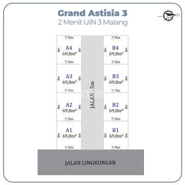 Selling Point Lokasi & Investasi • Dekat Kampus UIN 3 Malang Hanya ±1 menit ke Fakultas Kedokteran dan Pascasarjana UIN – ideal untuk kost, rumah kontrakan, atau hunian dosen. • Potensi Sewa Tinggi Lokasi strategis untuk investasi properti jangka panjang, terutama untuk segmen mahasiswa dan tenaga pengajar. • Akses Wisata & Fasilitas Umum ±5 menit ke Predator Fun Park, ±3 menit ke Ar Rohmah Putra, dan dekat Terminal Landungsari – memudahkan mobilitas penghuni. • Lingkungan Berkembang Area Locari Dau dikenal sebagai kawasan residensial yang terus berkembang, dengan banyak proyek kavling dan perumahan baru.