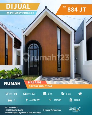Spesifikasi: Luas tanah 91 m² (6 x 15) Luas bangunan 52 m² 2 kamar tidur 1 kamar mandi Dapur Listrik token 1300W Air artesis Hadap Utara Carport muat mobil dan motor Taman depan Sertifikat HGB Udara sejuk Perumahan yang nyaman Jalannya cocok untuk jogging pagi Kids friendly Harga terjangkau Masuk Kotamadya Malang Harga normal 979 juta *Harga khusus free PPN 884juta* *UANG TANDA JADI HANYA 1 JUTA + FREE SEMUA BIAYA-BIAYA (kecuali asuransi KPR)* More Info: XAVIER MARKS PREMIER MAYA 0823xxxxxxxx