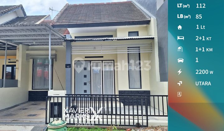 Spesifikasi : Luas Tanah : 112 m2 Luas Bangunan : 85 m2 Kamar Tidur : 2+1 Kamar Mandi : 1+1 Ruang tamu Ruang kluarga Dapur Service area Carport Gorden + vitrase Listrik : 2200 watt ( token ) Hadap Utara Harga Sewa 1 th Rp 48 jt nego Harga Sewa 2 th Rp 85 jt nego Hubungi : JUAN HOGIANTO 08593310xxxx XAVIER MARKS PREMIER JL. SUNANDAR PRIYO SUDARMO NO. 31F, MALANG