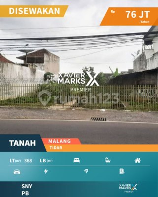 Tanah Cocok Buat Usaha di Nol Jalan Raya Tidar Malang LT 368m2 Dimensi 15x24 Cocok untuk usaha Sudah tersedia listrik Dekat pusat perbelanjaan, sekolah, kuliner, bank, dan SPBU Harga sewa 76 jt / thn nego Hubungi AGEN RAHMA - XAVIER MARKS PREMIER MALANG untuk info dan dealing. Tekan tombol WHATSAPP di halaman ini. (PB/SNY)