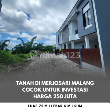 Tanah di Tlogomas, Malang. Dijual di wilayah yang asri. Dengan spesifikasinya adalah sebagai berikut: - Sertifikat: SHM - Sertifikat Hak Milik Lokasi tanah ini strategis, hanya selangkah menuju berbagai fasilitas utama dan menarik. Hanya Rp. 4.500.000, anda dapat langsung dapatkan tanah terbaik di daerah Tlogomas ini.