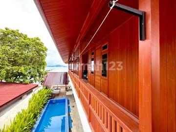 Dijual Beach villa lantai 2 (full furnished + interior) Alamat : Di Pantai Timur. Lingkungan 1 Bunaken. Manado Luas Tanah : 200 m2 Luas Bangunan : -+180 Bangunan Tahun : 2024 Kamar Tidur 4 Kamar Mandi 5 Ruang Tamu Ruang Kluarga Garasi mobil Ada parkiran perahu depan akomodasi Daya Listrik 5.000 watt Air bor bersih lancar Hadap rumah : ke laut Perabotan : lengkap full furnished Sertifikat: SHM IMB (langsung proses balik nama ke pembeli)