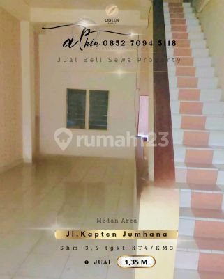 . JUAL RUKO Jl.Kapten Jumhana Medan Area _______________________________ Jual : 1.350.000.xxx NEGO SAMPAI JADI _______________________________ Spesifikasi: v️ SHM v️ Total luas tanah 100 m² v️ Dimensi 4 x 25 m² v️ Luas Bangunan 232 m² v️ 3,5 Tingkat v️ Kamar Tidur : 4 v️ Kamar Mandi : 3 v️ Listrik : 2200 Watt v️ Row 2 Mobil v️ Hadap : Timur Laut v️ Siap Huni v️ Butuh Sedikit renovasi Akses sekitar : ◇ 1 Menit ke Pajak Besi dan Pajak Sukarame ◇ 5 Menit ke Thamrin Plaza ◇ 3 Menit ke Yanglim More info: Aphin 0852xxxxxxxx
