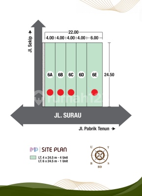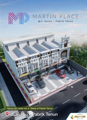 Komplek MARTIN PLACE Jl. Surau No. 6 (20 mtr ke Jl. Pabrik Tenun) ******** Akses Sekip - Pabrik Tenun - Amir Hamzah *TOWNHOUSE 21/2 TKT* LT. 4 x 24,5 m | Kosong | 126 m2 Hadap : Barat Daya Harga Perdana : Rp. 850 JT Hanya 50 M ke Jl. Sekip & Pabrik Tenun
