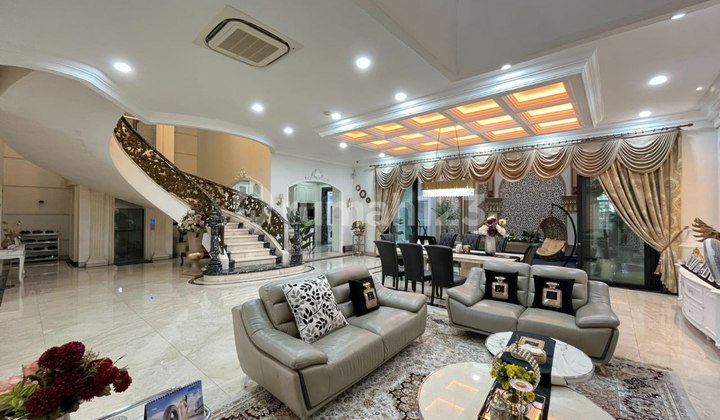 Villa di Komplek Padang Golf Mansion ( Polonia ) LT : 16x30 LB : 16x23 3.5 Tkt Lux, Full Furnish 6 KT + 2, 8 KM, 1 Karaoke Room Lift , Swimming Pool Hadap Barat SHM