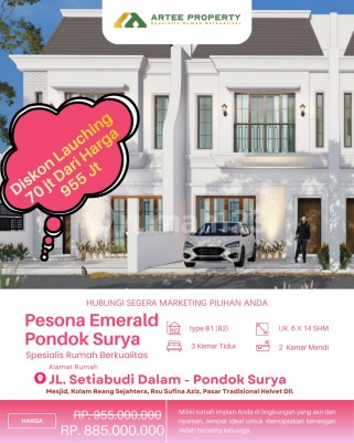 Lauching Pesona Emerald Pondok Surya - Hunian 2 Lantai Eksklusif di Jl. Setiabudi Dalam Artee Property dengan bangga mempersembahkan Pesona Emerald Pondok Surya, sebuah hunian modern 2 lantai yang dirancang khusus untuk memberikan kenyamanan, fungsi, dan kualitas hidup terbaik bagi keluarga. Terletak di Jl. Setiabudi Dalam - Pondok Surya ******** Pesona Emarald Pondok surya menawarkan akses yang mudah menuju pusat aktivitas harian. Dekat dengan: 1 menit ke Masjid 3 menit ke Kolam renang sejahtera 3 menit ke Gor 33 futsal 5 menit ke Rsu Sufina Aziz 7 menit ke Pasar Tradisional 7 menit ke Mandiri Express Supermarket 10 menit ke Upt SMP Negri 18 medan 10 menit ke Klinik Helvet Spesifikasi Unit: - Rumah 2 lantai type 81 - Blok B2: 6 x 14 Meter Diskon Launching 70.000.000 dari Harga Normal : Rp. 955.000.xxx Juta menjadi Harga Cash Keras : Rp. 885.000.xxx Juta - Tata ruang efisien dengan desain modern Rumah B2 menghadap ke Selatan Bonus Eksklusif untuk Konsumen - Pagar - Cctv - Penutup Meja Dapur - Lampu Hias Keunggulan Pesona Emeral Pondok Surya - Perumahan Dalam Komplek - Berada di tengah Kota dan Akses mudah kesemua titik pusat Kota - Konsep hunian modern dengan desain fungsional dan estetik - Bonus menarik untuk menambah kenyamanan tinggal - Cocok untuk keluarga yang mendambakan rumah praktis dengan kualitas bangunan terjamin - Lingkungan perumahan asri dan aman - Legalitas Lengkap Sistem Pembayaran Fleksibel - Cash Keras: pelunasan maksimal 7 hari - Cash by Progress 9 bulan: setor DP dan pembayaran sesuai progres pembangunan - Cicilan Developer hingga 9 Bulan tanpa BI Checking: cukup dengan mulai DP 20% dan angsuran bulanan - KPR Bank: setor DP lalu akad KPR dengan bank rekanan Harga rumah sudah termasuk: - Sertifikat Hak Milik (SHM) - Pajak Penjual (PPH) - Persetujuan Bangunan Gedung (PBG) Tidak termasuk: biaya KPR bank, biaya balik nama, akta jual beli notaris, serta BPHTB. Hunian Terbatas Hunian ini menjadi pilihan tepat untuk Anda yang mengutamakan value for money, kenyamanan keluarga, dan investasi jangka panjang di Kota Medan.