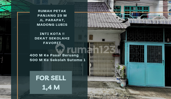 • Rumah Petak Panjang 29 Meter Jl. Parapat ( ± 50 Meter Dari Jl. Madong Lubis ) • Lokasi Inti Kota - Sangat Strategis - Dekat Ke Sekolah2 Favorit : ✓ Hanya 50 Meter Dari Jl. Madong Lubis ✓ 300 Meter Ke Sekolah Husni Thamrin Jl. Galang ✓ 400 Meter Ke Pasar Beruang ✓ 500 Meter Ke Sekolah Sutomo 1, Jl. Jambi ✓ 3 Menit Ke Sekolah Methodist 2 Jl. Thamrin ✓ 4 Menit Ke Thamrin Plaza & Pasar Ramai • Harga Jual : 1.400.000.xxx / Nego Tipis _ _ _ _ _ _ _ _ _ _ _ _ _ _ _ _ • Unit / Type : Rumah • Kondisi : Siap Huni • Posisi : Pinggir Jalan Kedua • Lokasi : Jl. Parapat • Kota : Medan • Kecamatan : Medan Perjuangan _ _ _ _ _ _ _ _ _ _ _ _ _ _ _ _ • Jumlah Lantai : 1 Tingkat • Dimensi Tanah : 5 x 29 M • Dimensi Bangunan : 5 x 28 • Kamar Tidur : 3 • Kamar Mandi : 1 • Sertifikat : SHM • Hadap : Orientasi Selatan • Listrik : 2.200 Watt • Air : PDAM _ _ _ _ _ _ _ _ _ _ _ _ _ _ _ ✓