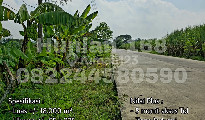DIJUAL TANAH INDUSTRI Mojokerto, Jawa Timur Spesifikasi : - Luas +/- 18.000 m² - Ukuran +/- 65 x 275 - SHM - Sudah ada jaringan PLN dan PDAM - Jalan Cor - Harga 500 rb / m² Nilai Plus : - 5 menit akses Tol - Zona Industri