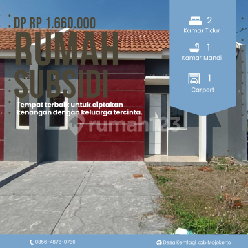 Rumah bergaya minimalist modern di Kemlagi. Temukan rumah 1 lantai yang modern ini, dijual dengan pemandangan indah yang menambah nilai estetika di lingkungan hunian. Rumah ini berada di wilayah Dekat Kawasan Bisnis & Industri serta menghadirkan lingkungan fasilitas yang lengkap, cocok untuk Anda yang menginginkan hunian nyaman. Spesifikasi Utama Properti: - Kamar Tidur: 2 - Kamar Mandi: 1 - Sertifikat: HGB - Hak Guna Bangunan - Daya Listrik: 1300 W - Kondisi Perabotan: Semi Furnished Dilengkapi dengan: - Wastafel. - Taman. - One Gate System. - Lapangan Voli. Fitur unggulan: - Bisa KPR. - Subsidi Pemerintah. - Siap Huni. - DP 0%. - Free Biaya Notaris. - Free Biaya KPR. - Free BPHTB. - Dekat Fasilitas Kesehatan. - Dekat Tempat Wisata. - Dekat Taman Kota. - Dekat Sekolah Negeri. - Dekat Pusat Perbelanjaan. - Dekat Kawasan Bisnis & Industri. - Pemandangan Alam. - Akses Jalan Muat 2 Mobil. - Lokasi Strategis. - Lokasi Bebas Banjir. - One Gate System. - Bisa KPR. - Properti Subsidi. Berlokasi di Kemlagi, rumah ini memberikan kemudahan akses ke berbagai fasilitas menarik. Dengan harga Rp. 166.000.xxx, anda bisa memiliki hunian eksklusif yang sudah siap huni dan bersertifikat HGB - Hak Guna Bangunan. Ambil kesempatan untuk menikmati pengalaman tinggal di kawasan Kemlagi yang nyaman ini! Kontak segera untuk informasi lebih lanjut!