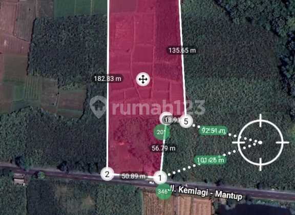 DI JUAL : Tanah di Raya Kemlagi, Mojokerto Nol Jalan provinsi Luas 1,3 ha Lebar 55 mtr SHM 1 pemilik Harga 550rb/m Nego