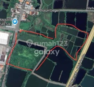 Jual Tanah Uruk 0 Tol Manyar Mojokerto Luas 5 ha Belakang 0 Raya Geger Lebar depan 120 m Dekat Sungai dan PGN SHM Harga 2,2 jt/m