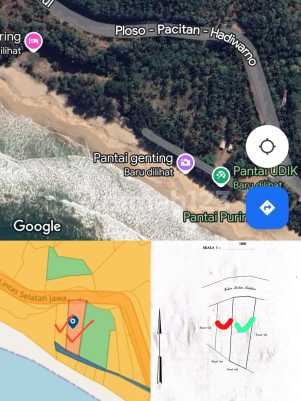 Jual kavling tanah di sidomulyo Pacitan jawa timur Luas : 3.544m² Sertifikat : SHM (kepemilikan pribadi) lokasi : Pacitan - jawatimur harga : 750rb permeter TURUN JADI 500 Ribu /m2 Tanah Hadap : Selatan Luas : P 82 x L 42 m Row Jalan : 8 mtr cocok untuk buka resort, villa, objek wisata, tambak, dll lokasi strategis pinggir jalan utama dan dekat pantai, LYA SAP mugie