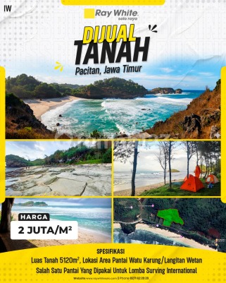 Kode Properti: 0326xxxx-IW Lokasi: Area Pantai Watu Karung / Langitan Wetan, Kab. Pacitan, Jawa Timur Kesempatan emas bagi para developer pariwisata dan investor visioner! Dijual hamparan tanah potensial yang berlokasi di destinasi wisata eksotis Area Pantai Watu Karung / Langitan Wetan, Pacitan, Jawa Timur. Kawasan ini bukan sekadar area pesisir biasa, melainkan primadona pariwisata yang pantainya secara resmi digunakan sebagai lokasi Lomba Surfing Internasional. Memiliki aset properti di titik ini merupakan langkah strategis untuk meraup keuntungan dari tingginya kunjungan wisatawan domestik maupun mancanegara. Lahan ini menawarkan skala pengembangan yang sangat masif, yakni dengan Luas Tanah mencapai 5.120 m². Dari dokumentasi visualnya, properti ini menawarkan pesona alam yang tiada duanya; perpaduan antara keindahan tebing karang yang ikonik, pasir putih, laut biru, serta deburan ombak yang spektakuler. Kondisi lingkungan yang rimbun dikelilingi pepohonan rindang di sekitar pantai menjadikannya lokasi yang sangat sempurna untuk disulap menjadi area camping/glamping ground eksklusif, eco-resort, maupun kawasan komersial pendukung pariwisata. Spesifikasi Properti: Luas Tanah: 5.120 m² Lokasi Khusus: Area Pantai Watu Karung / Langitan Wetan Highlight Kawasan: Salah Satu Pantai Yang Dipakai Untuk Lomba Surfing Internasional Keunggulan Lokasi (Selling Point): Magnet Peselancar Dunia: Daya tarik ombak bertaraf internasional memastikan kawasan ini tidak pernah sepi dari turis asing pecinta olahraga air. Luasan Lebih Dari Setengah Hektar: Dengan lahan 5.120 m², Anda memiliki landasan kanvas yang bebas untuk merancang resort besar atau beberapa klaster glamping kekinian. Potensi Bisnis Tinggi: Lokasi yang sudah dikenal secara global menjamin visibilitas dan prospek bisnis hospitality yang menjanjikan Return on Investment (ROI) stabil. Keindahan Visual Paripurna: Lanskap karang dan laut Pacitan yang masih asri merupakan nilai jual healing yang paling dicari pelancong saat ini. Kuasai sekarang juga lahan bernilai komersial pariwisata tinggi di pesisir selatan Jawa ini sebelum diakuisisi pemodal lain! Hubungi kami sekarang untuk jadwalkan survei lokasi!