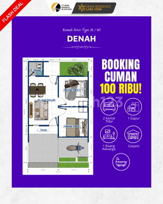 Dewe Residence Pasuruan menghadirkan hunian Type Aster 36/60 yang dirancang untuk memberikan kenyamanan dan kemudahan bagi keluarga. Rumah ini memiliki tata ruang efisien, dua kamar tidur, ruang tamu lega, serta halaman yang bisa disesuaikan untuk kebutuhan keluarga. Lokasinya berada di kawasan strategis dekat Tol Grati, memudahkan akses menuju kota besar di Jawa Timur. Lingkungan sekitar masih asri dengan udara sejuk serta pemandangan indah Danau Grati, menjadikan hunian ini tempat ideal untuk melepas lelah setelah beraktivitas. Harga rumah ini sangat terjangkau karena semua biaya sudah All In hanya 4 juta (S&K berlaku). Kamu cukup Booking Fee 100 ribu (NUP) untuk mengamankan unit dan mulai proses kepemilikan rumah. Didukung oleh program subsidi resmi pemerintah, Dewe Residence menjamin proses KPR yang mudah, aman, dan legalitas yang jelas. Hunian ini pilihan sempurna bagi kamu yang ingin tinggal di rumah nyaman tanpa membebani keuangan. @Marketing Tim 5
