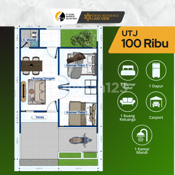 Dewe Residence Pasuruan menjadi pilihan ideal bagi siapa pun yang mencari rumah strategis namun tetap tenang. Berada hanya beberapa menit dari pintu Tol Grati, hunian Type Aster 36/60 ini memudahkan mobilitas ke berbagai kota besar di Jawa Timur. Selain strategis, lingkungannya tertata rapi dan dikelilingi suasana hijau yang menenangkan. Setiap unit dirancang untuk memaksimalkan kenyamanan, dengan tata ruang fungsional dan sirkulasi udara yang baik. Yang paling menarik, semua biaya sudah All In hanya 4 juta (S&K berlaku). Kamu tak perlu repot menyiapkan dana tambahan - cukup Booking Fee 100 ribu (NUP) untuk mulai proses pembelian. Program subsidi resmi pemerintah juga memastikan harga tetap terjangkau. Hunian ini sempurna bagi pekerja aktif, keluarga muda, maupun investor yang ingin aset properti dengan akses unggulan. Watermark: Tim 5