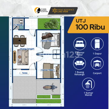 Dewe Residence Pasuruan adalah hunian yang dirancang untuk memenuhi kebutuhan keluarga modern. Dengan konsep rumah Type Aster 36/60, kamu akan mendapatkan rumah dengan tata ruang efisien, lingkungan aman, serta fasilitas pendukung seperti masjid, area bermain anak, dan jogging track. Dibangun di kawasan strategis dekat Tol Grati, hunian ini memberikan kemudahan akses ke pusat aktivitas dan tetap menghadirkan suasana tenang berkat view Danau Grati. Udaranya segar, lingkungannya bersih, dan suasananya sangat ideal untuk keluarga yang ingin hidup seimbang antara pekerjaan dan ketenangan rumah. Keunggulan utama Dewe Residence terletak pada kemudahan proses dan harga yang sangat terjangkau. Semua biaya sudah All In 4 juta (S&K berlaku), tanpa biaya tambahan di luar ketentuan. Cukup Booking Fee 100 ribu (NUP) untuk memulai langkah memiliki rumah sendiri. Dengan legalitas jelas dan dukungan subsidi resmi pemerintah, kamu bisa memiliki rumah impian tanpa harus menanggung biaya besar di awal. Hunian ini juga bernilai investasi tinggi karena lokasinya yang berkembang pesat. Kunjungi lokasi kami atau hubungi untuk jadwal survei gratis. Watermark: Tim 5