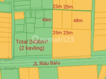 Luas Tanah : 2400m² (2 Kavling @1200m²) 1 Kavling 1200m² (25 x 48) 2 Kavling 2400m² (50 x 48) Hadap Utara Surat SHM Samping Jalan Aspal Dekat ke Kampus Abdurrab, Sekolah Darma Yudha
