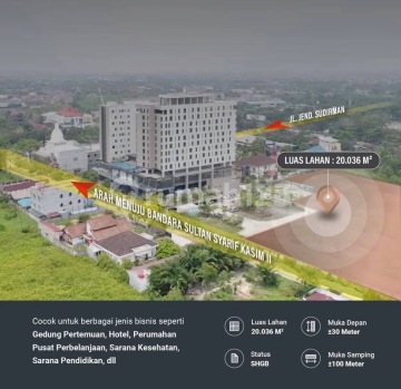 Dijual tanah jalan jendral sudirman kota Pekanbaru Riau lokasi strategis jual cepat untuk menambah cashflow perusahaan hanya 1 menit dari bandar udara international sultan syarif kasim Luas tanah 21.000m2 ( 2.1 ha ) sertifikat HGB atas nama PT peruntukan apartemen , komersil , dll Harga 3.5jt/mtr nego Johanes Miracle Property 0878xxxxxxxx wa