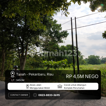 DIJUAL TANAH STRATEGIS TANPA PERANTARA (PEKANBARU) COCOK UNTUK TOWNHOUSE / INVESTASI JANGKA PANJANG Lokasi: Jl. Srikandi, Pekanbaru Riau (Kawasan Berkembang & Strategis) Spesifikasi Tanah: Luas Tanah: 3,450 m² Dimensi: ± 23 m x 150 m (Memanjang) Legalitas: Sertifikat Hak Milik (SHM) ✅ * Keunggulan & Lokasi Strategis: Pusat Lifestyle: Sangat dekat dengan Mall SKA & Mall Living World. Kawasan Pendidikan: Dekat dengan sekolah-sekolah ternama (Witama, Guang Ming, Stella Gracia). Dekat Kampus: Hanya selangkah ke Universitas Pelita Indonesia. Akses Mudah: Area ramai, jalan aspal lebar, dan bebas banjir. Potensi Lahan: Sangat ideal untuk pembangunan perumahan cluster, hunian pribadi yang luas, kos-kosan eksklusif, maupun gedung komersial/kantor. Harga: Rp 450000xxxxNego) Info & Survey: 0823xxxxxxxxa.n. Darwin - Pemilik Langsung) Kode Listing: PKU-D23