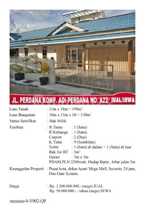 Rekomendasi properti dengan penawaran terbaikRumah123 adalah situs teknologi jual beli dan sewa properti terdepan di Indonesia, yang hadir sejak tahun 2007 dan telah melayani jutaan orang di Indonesia. Rumah123 senantiasa berkomitmen untuk membuat pengalaman 'Jual Beli dan Sewa Properti Lebih Mudah' dengan dukungan dari developer terkemuka serta agen profesional.