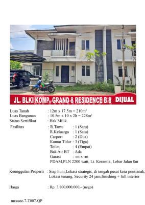 Kesempatan terbatas buat Anda dapatkan rumah nyaman dengan return investasi tinggi di Pontianak Tenggara, Pontianak. Rumah ini menawarkan kelengkapan fasilitas serta memiliki nilai tepat yang siap untuk segera Anda miliki, utamanya bagi Anda yang mencari hunian di lokasi yang terjangkau. Kondisi properti ini bagus dan memiliki desain unik yang menambah daya tarik dan estetika properti ini. Rumah ini berada di wilayah strategis. Detail Properti ini adalah: - Kamar Tidur: 3 - Kamar Mandi: 4 - Sertifikat: SHM - Sertifikat Hak Milik - Kondisi Perabotan: Furnished Tidak hanya itu, namun properti ini juga memiliki keunggulan sebagai berikut: - Full Furnished. - Bonus Canopy. - Bonus Furniture. - Siap Huni. Lokasi Strategis terletak di Pontianak Tenggara, properti ini memudahkan akses Anda ke fasilitas-fasilitas utama dan unggulan. Harga yang sangat kompetitif yaitu, Rp. 0, rumah ini siap menjadi milik Anda! Nikmati segala kemudahan dan berbagai keunggulan menarik saat properti eksklusif ini milik Anda.