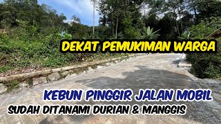 Lokasi persis pinggir jalan mobil lebar muka sekitar 30-40 meter Kebun di tengah pemukiman warga Perkampungan warga Pinggir jalan desa 1 mobil Dari jalan desa papasan 2 mobil masuk 70 m sampai lokasi kebun Lahan kebun berada di atas level jalan ± 1 meteran Bagian depan kebun sudah pasang pondasi (memanjang bagian depan kebun) - lebar muka ± 40 meteran - Sudah ada jalur listrik - Sumber air sumur - Bisa pasang PAMDES - Saat ini kebun ditanami manggis & durian ( masih kecil² ) - Jarak dari GT Darangdan 8 km / 16 - 20 menitan - berada diketinggian 610 mdpl
